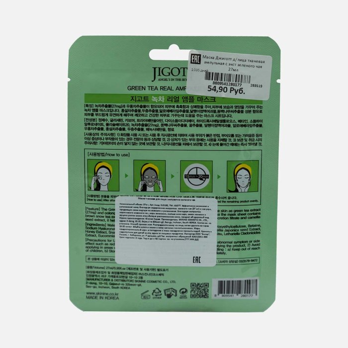 Маска Джиготт д/лица тканевая ампульная с экст зеленого чая 27мл