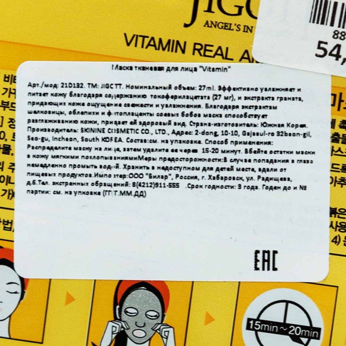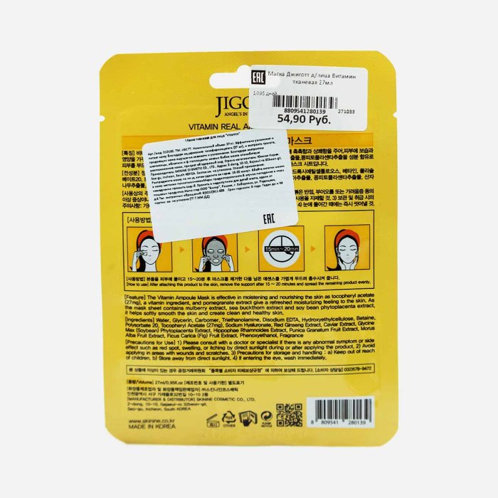 Маска Джиготт д/лица Витамин тканевая 27мл