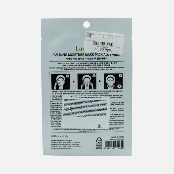 Маска Ламелин д/лица тканевая с алоэ вера 23г