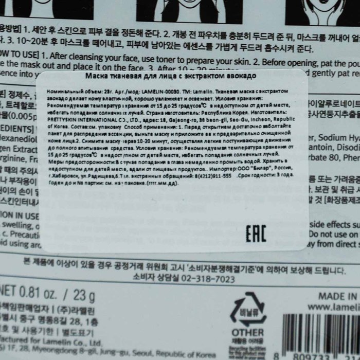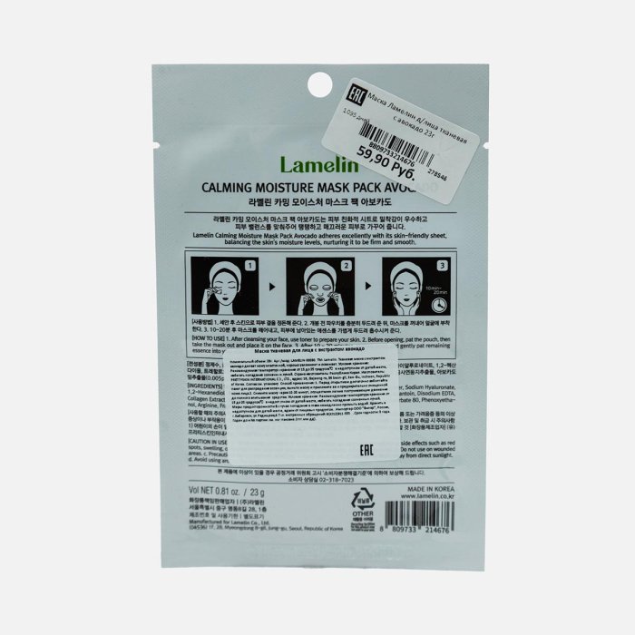 Маска Ламелин д/лица тканевая с авокадо 23г