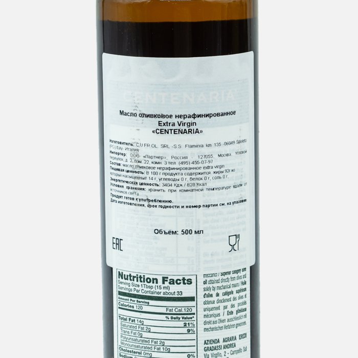 Масло Градасси оливковое Чентенариа нераф Экстра Вирджин ст/б 500мл