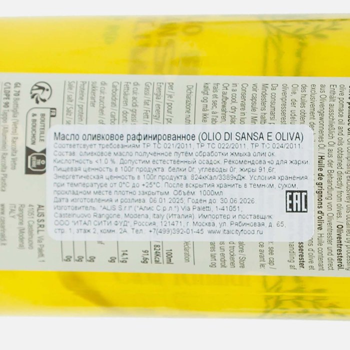 Масло Каса Ринальди оливковое Санса ст/б 1л