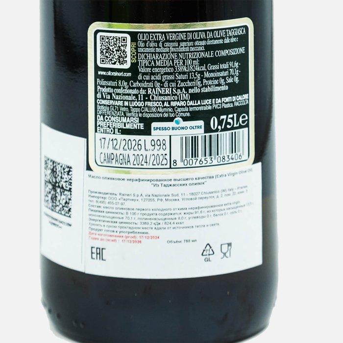 Масло Олеифисио Райнери оливковое Таджаска Экстра Вирджин ст/б 750мл