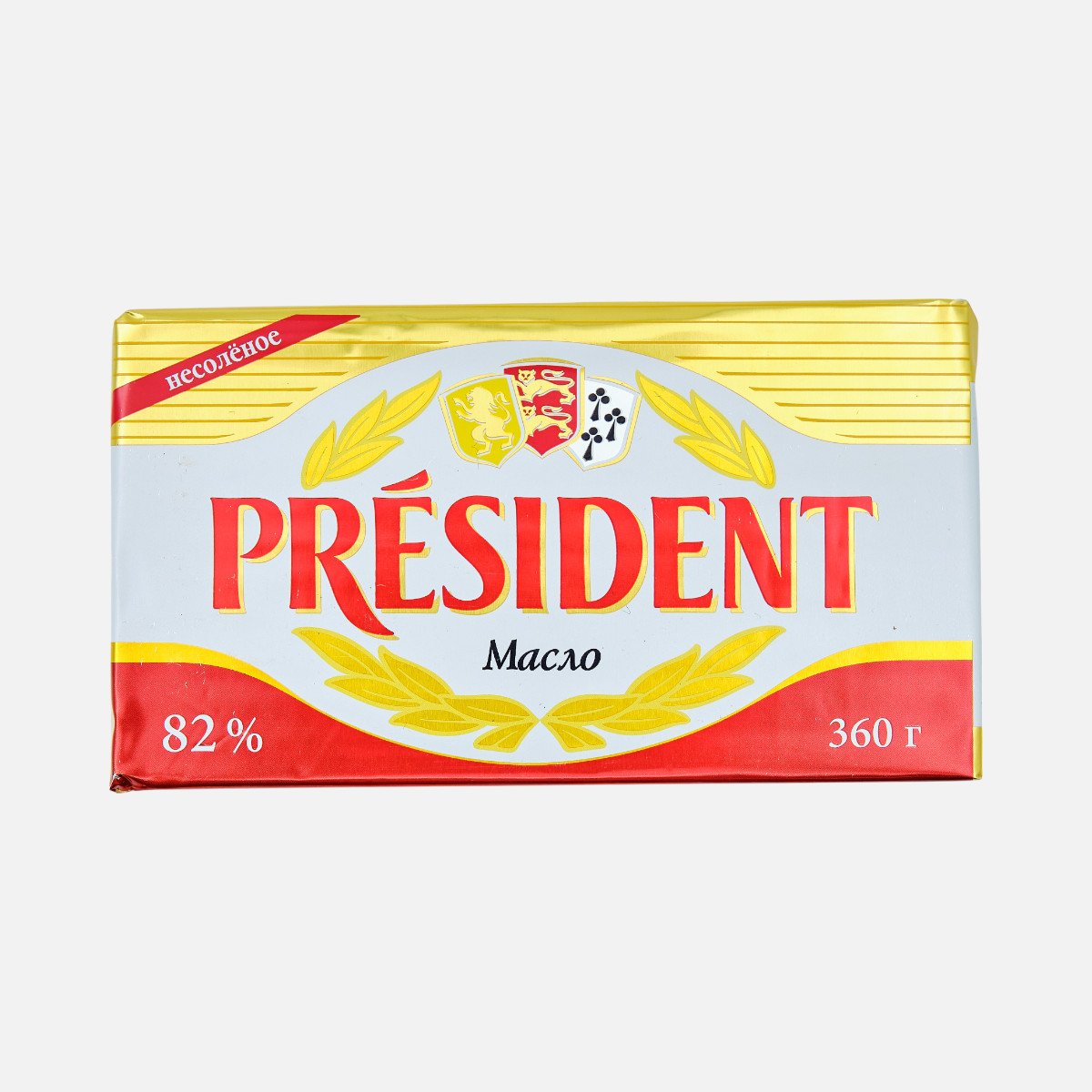 Масло Президент кислосливочное несоленое в/с 82% 360г