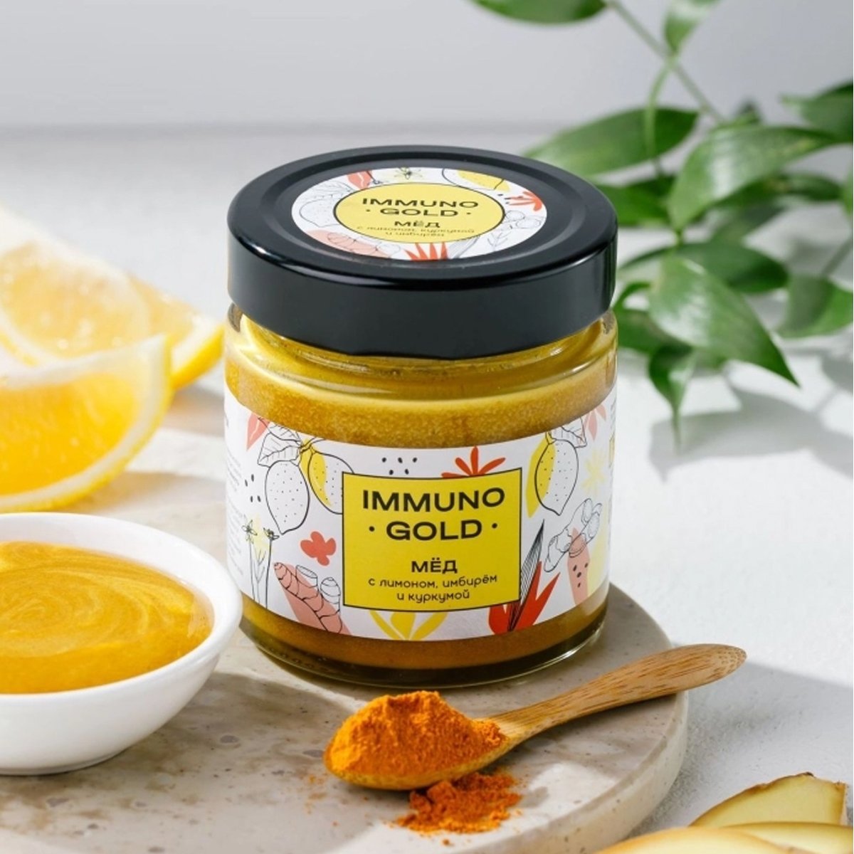 Мед Сибирский кедр ИммуноГолд c куркумой/имбирем/лимоном 200г
