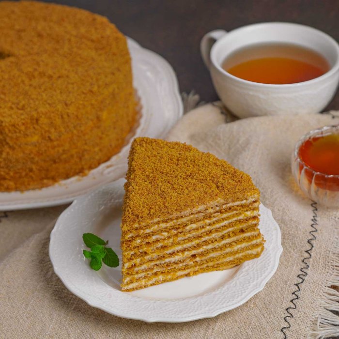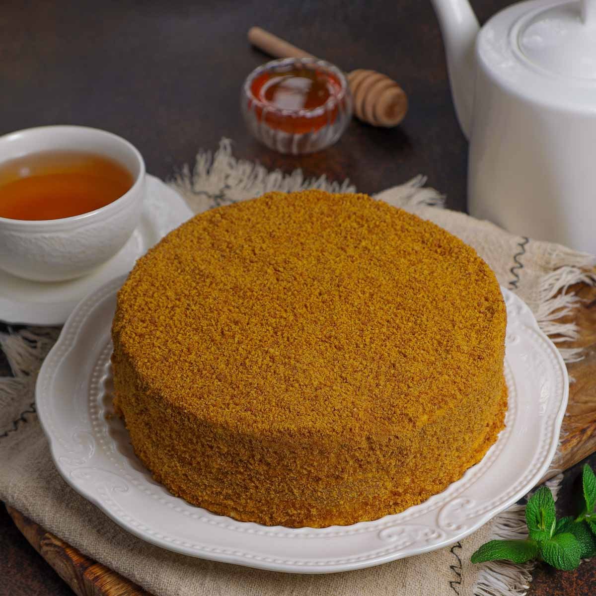 Мука пшеничная в/с, сметана, сливки животные, мед натуральный, сахар-песок, маргарин, яйцо куриное, сода пищевая, сахарная пудра