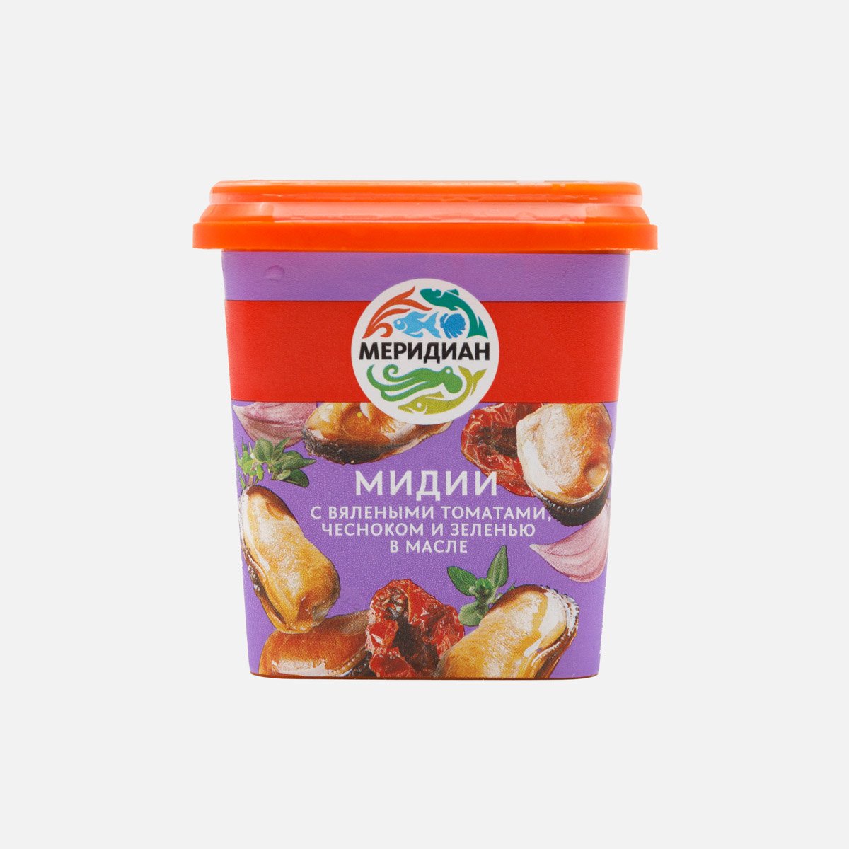 Мидии Меридиан с вялеными томатами/ чесноком и зеленью в масле 270г