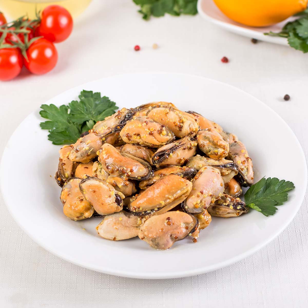 Нежное мясо моллюсков в пикантном соусе с легким французским акцентом.Сочная закуска, в которой солоновато-сладкие мидии сливаются в гармоничном дуэте с ароматным горчичным маринадом, прекрасно дополняя, но не перекрывая уникальные вкусы друг друга. Попробуйте это изысканное блюдо по фирменному рецепту наших кулинаров