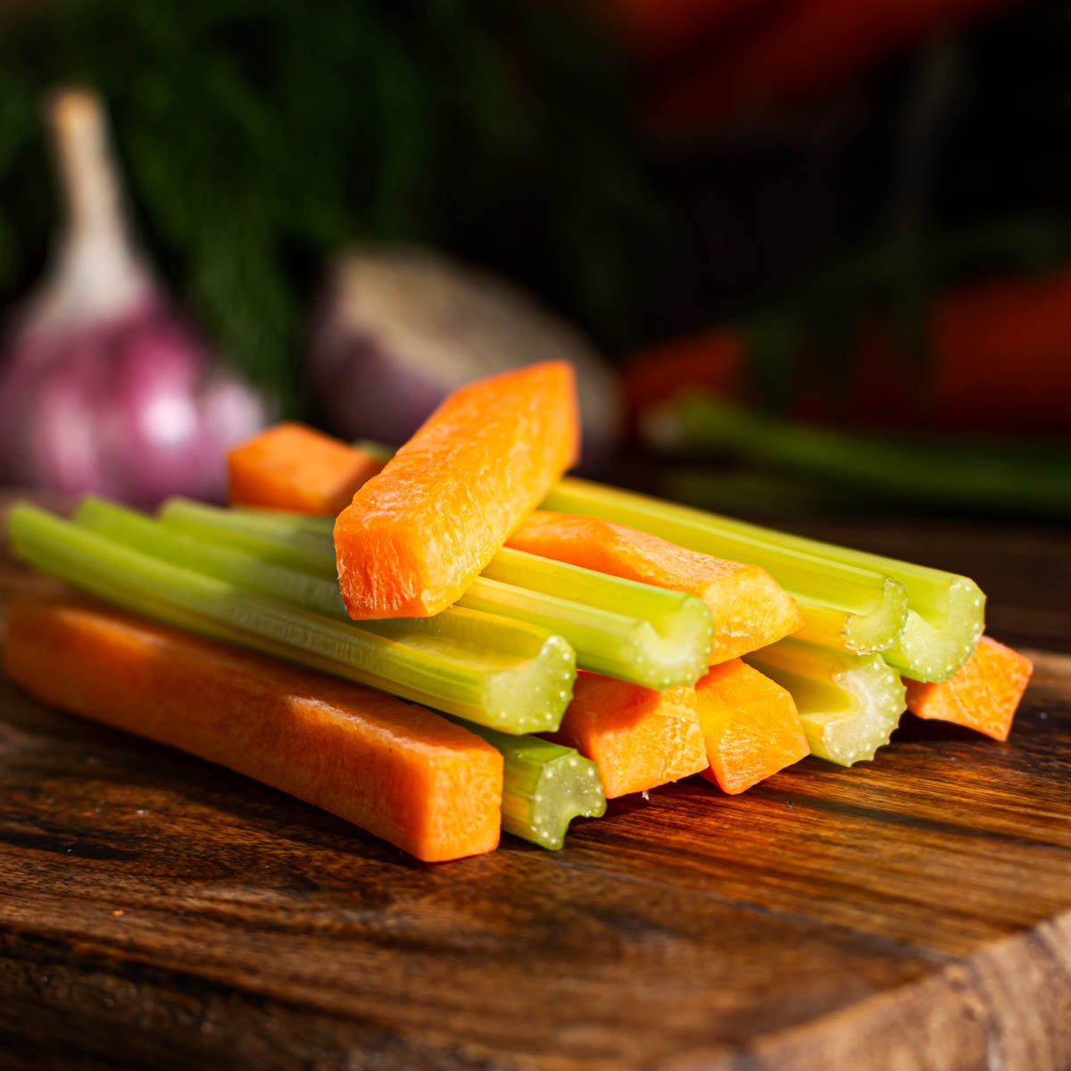 Хрустящий полезный дуэт из сладкой сочной моркови и ароматного пряного сельдерея. Овощи прекрасно гармонируют и дополняют друг друга. Свежий легкий микс идеален как полезный перекус или легкий аперитив перед праздничным ужином. Обязательно попробуйте в сочетании с нашими фирменными соусами!