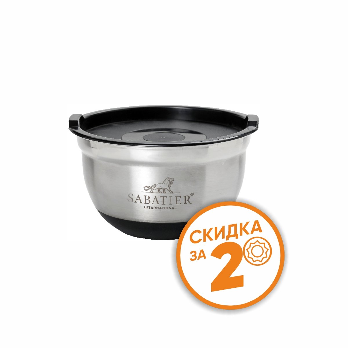 Миска Сабатье из нержавеющей стали с пластиковой крышкой 17см SSB-17