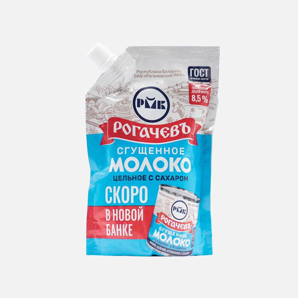Молоко сгущ Рогачевъ цельное с сахаром ГОСТ 8.5% дой/пак 270г
