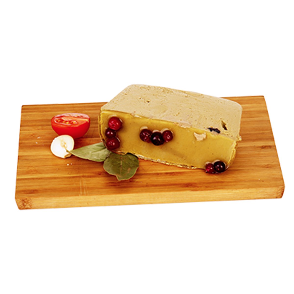 Печень утки, мясо утки, морковь, лук, масло сливочное, клюква, соль, желатин.