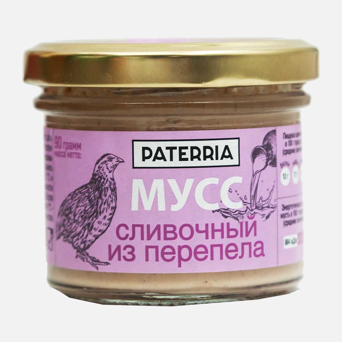 Мусс Патеррия сливочный из перепела ст/б 90г