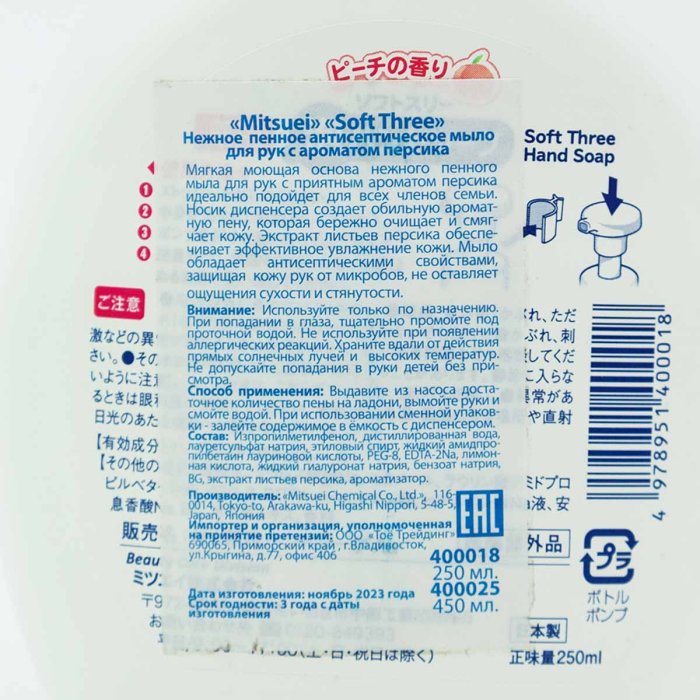 Мыло Митсуи Нежное пенное д/рук с аромат персика 250мл