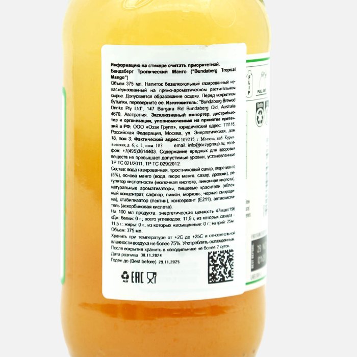 Напиток Бандаберг Тропическое манго газ ст/б 0,375л