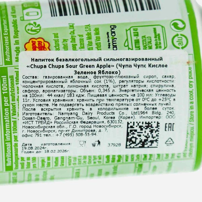 Напиток Чупа Чупс Кислое зеленое яблоко газ ж/б 345мл