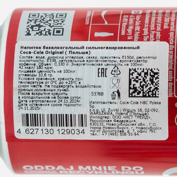 Напиток Кока-Кола Ориджинал газ ж/б 0,33л