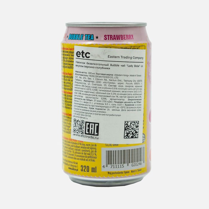 Напиток Мадам Хонг БаблТи ЛедиБоба персик/клубника 320мл