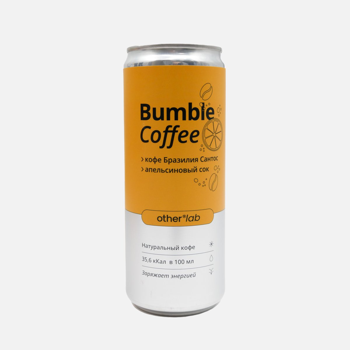 Вода питьевая, кофе натуральный жареный молотый 100% Арабика Бразилия Сантос, сок апельсиновый, сироп топинамбура, карамельный сироп, сорбат калия.