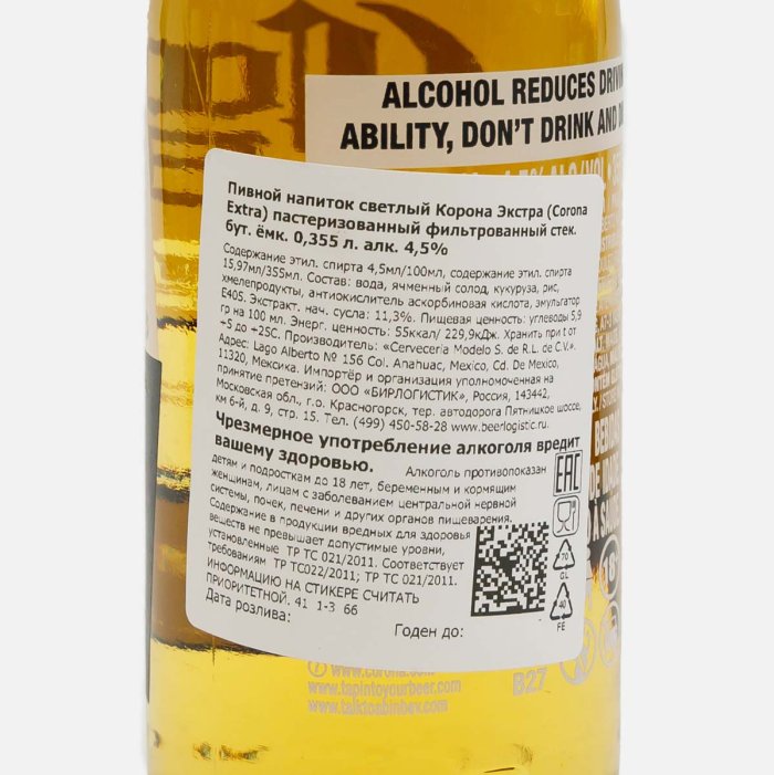 Напиток пивной Корона Экстра светлое 4.5% ст/б 0,355л