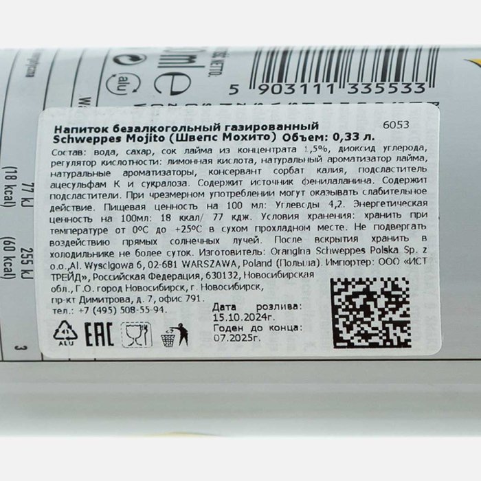 Напиток Швепс Мохито газ ж/б 0,33л
