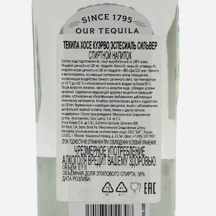 Напиток спиртной Текила Хосе Куэрво Эспесиаль Сильвер 38% ст/б 0,7л