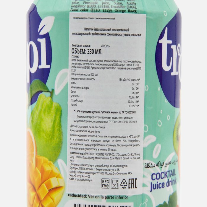 Напиток Тропи с соком ананаса/гуавы/апельсина ж/б 330мл