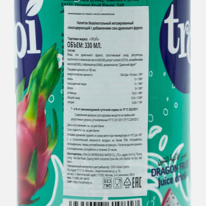 Напиток Тропи с соком драгон фрут ж/б 330мл