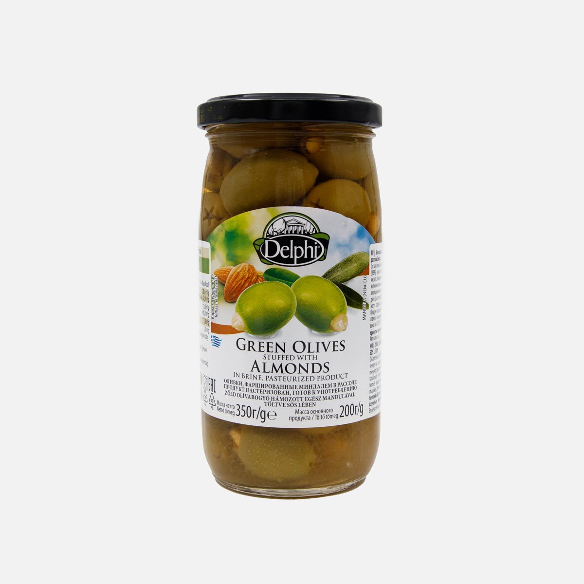 Оливки Делфи зеленые с миндалем 370мл