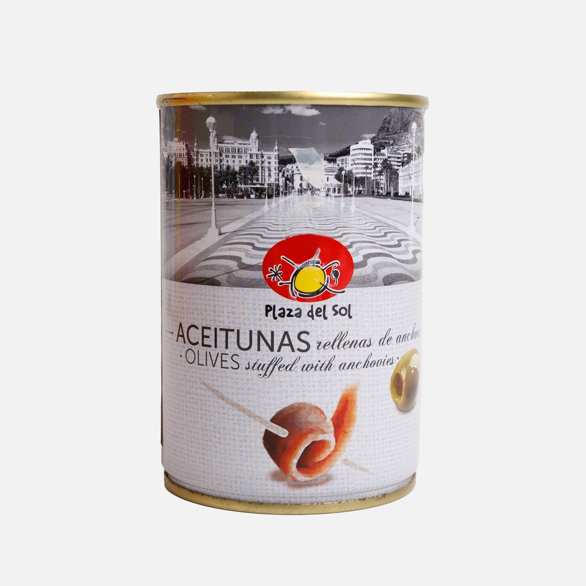 Оливки Плаза дель Соль из Аликанте с анчоусом ж/б 280г