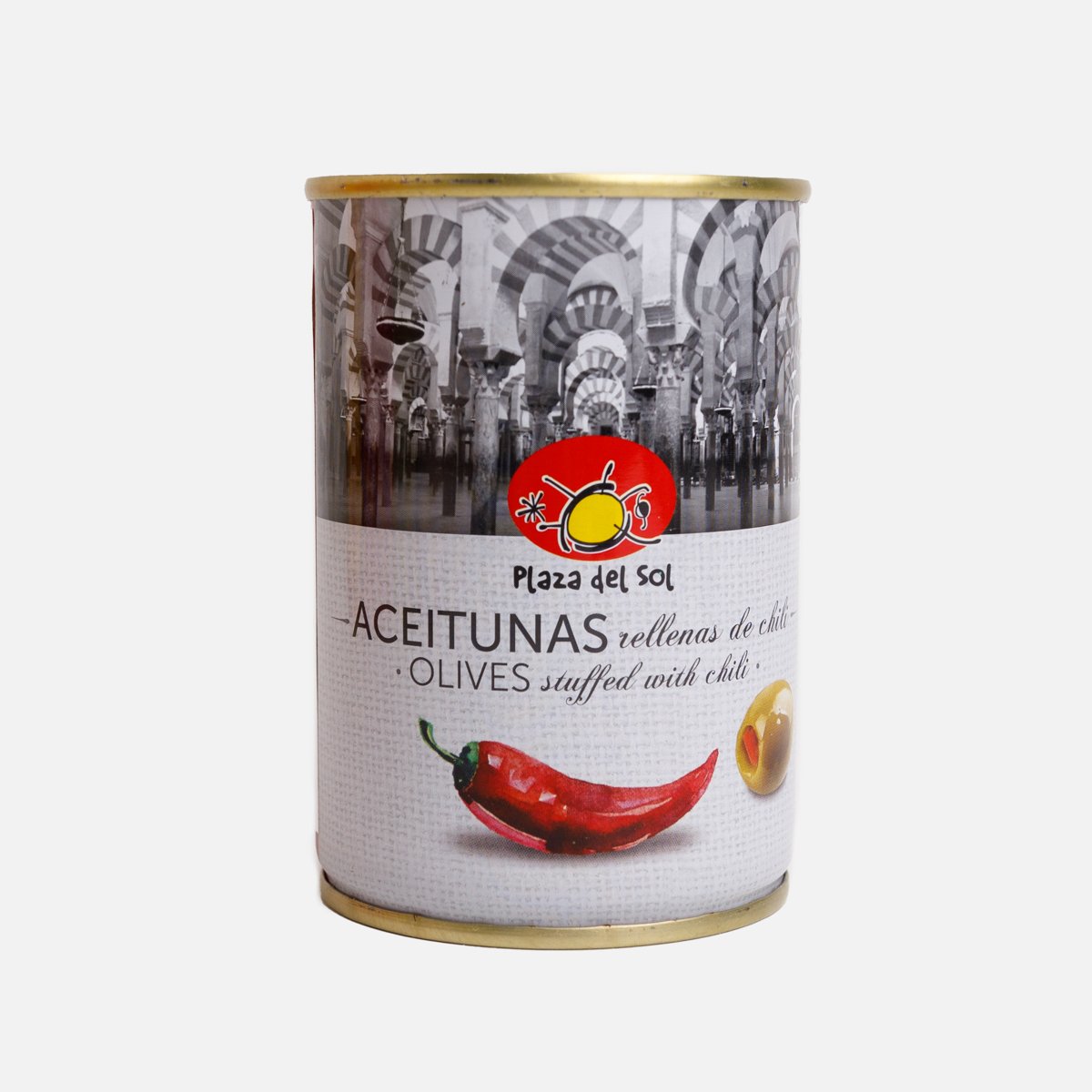 Оливки Плаза дель Соль из Аликанте с перцем чили ж/б 280г