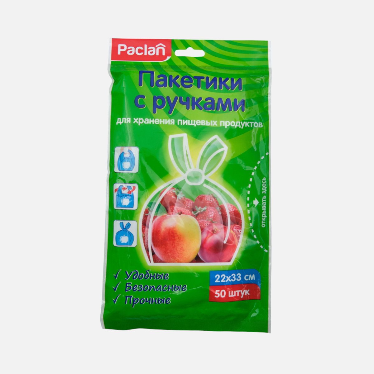 Пакетики Паклан с ручками д/хранен пищевых продуктов 22х33см 50шт
