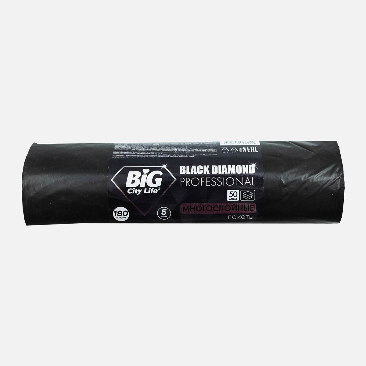Пакеты д/мусора Биг Сити Блэк Даймонд ЛД 90*110см 180л 5шт черн