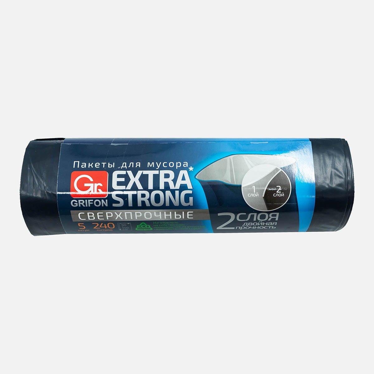 Пакеты Грифон д/мусора двухслойные 240л 90х140см 5шт в рул 101-078