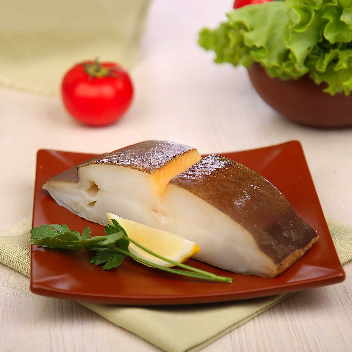 Нежное сладковатое мясо морского деликатеса идеально пропиталось ароматным дымом, сохранив природную жирность и насыщенный вкус. Соль и сахар оттеняют благородство рыбы, а подсолнечное масло добавляет бархатистости. Разделайте на нежные пластины и наслаждайтесь чистым вкусом океана