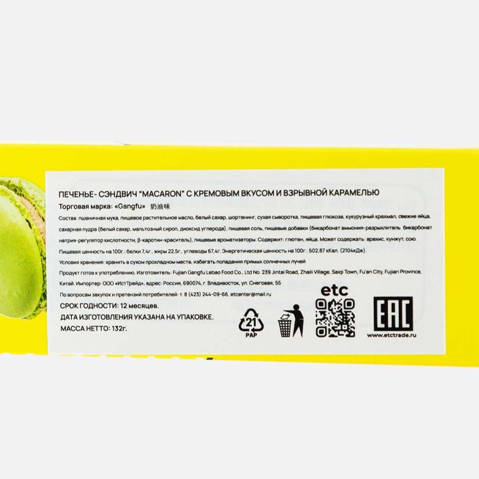 Печенье Ганг-Фу Макарон с кремовым вкусом 132г