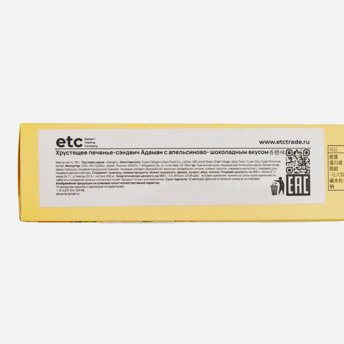 Печенье-сэндвич Ганг-Фу Адаман с апельсин-шок вкусом 95г