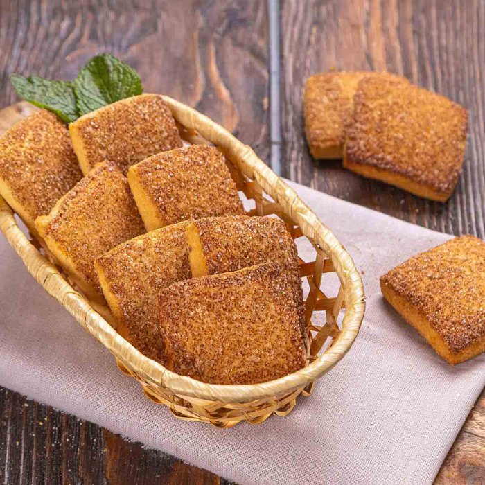 Рассыпчатое печенье, с приятной хрустящей сахарно-коричной корочкой и необыкновенным восточным ароматом пряностей. Десерт с ярко выраженным сливочно-ванильным вкусом и пикантными нотками. Идеально подходит к утреннему кофе или вечернему чаю.