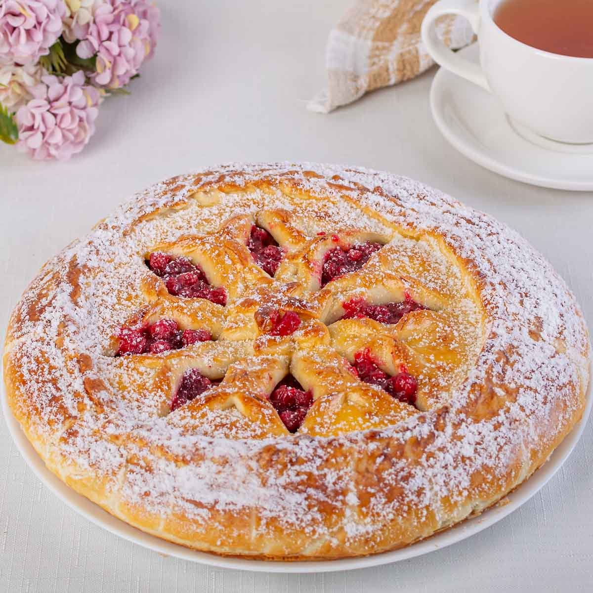 Праздничный рассыпчатый пирог с бесподобным манящим ароматом корицы по оригинальному рецепту наших мастеров. Вкус выпечки идеально сбалансирован за счет натуральной сладости яблок и яркой, освежающей терпковатой ягодной ноты. Сочная начинка с лесным акцентом и легкой кислинкой делают каждый кусочек особенным.