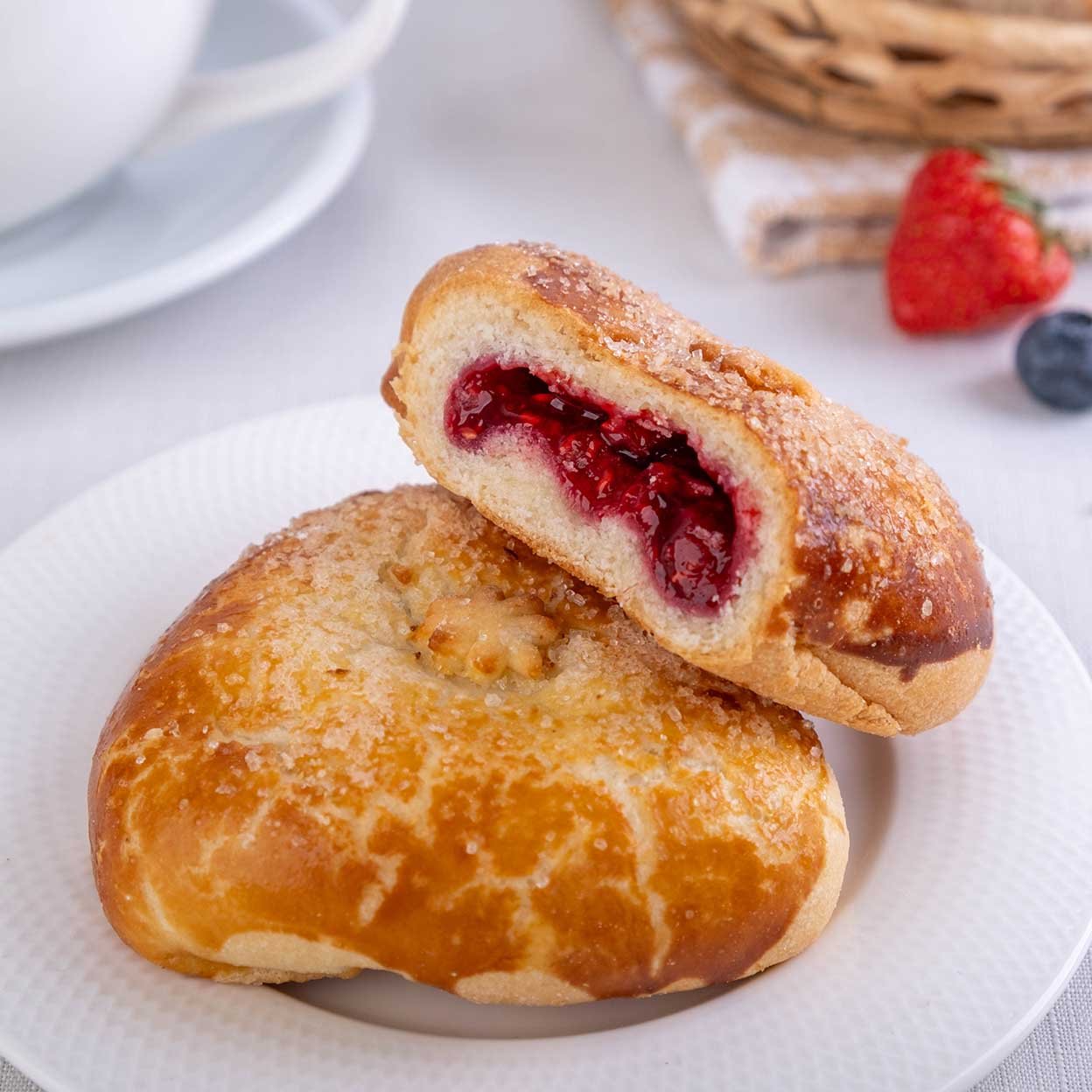Сочный румяный пирожок с полезной ягодной начинкой. Сочетание текстуры сдобного теста и малины, баланс сладкого и легкой кислинки делает это блюдо гармоничным и вкусным десертом. Обязательно попробуйте нашу выпечку с нашими ароматными травяными сборами!