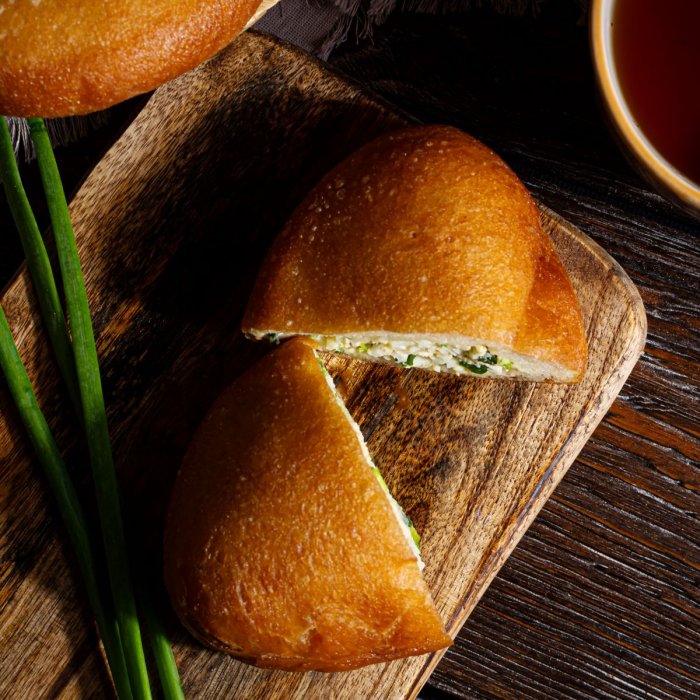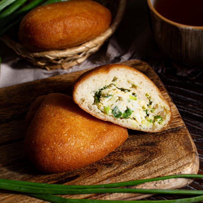 Самый летний пирожок от наших мастеров! Воздушное тесто с аппетитной поджаристой корочкой и нежная начинка из варёных яиц с горьковато-свежим зелёным луком. Попробуйте традиции на вкус!