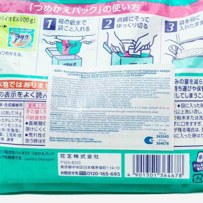 Порошок Као Аттак стиральный универс с кондиционером 810г
