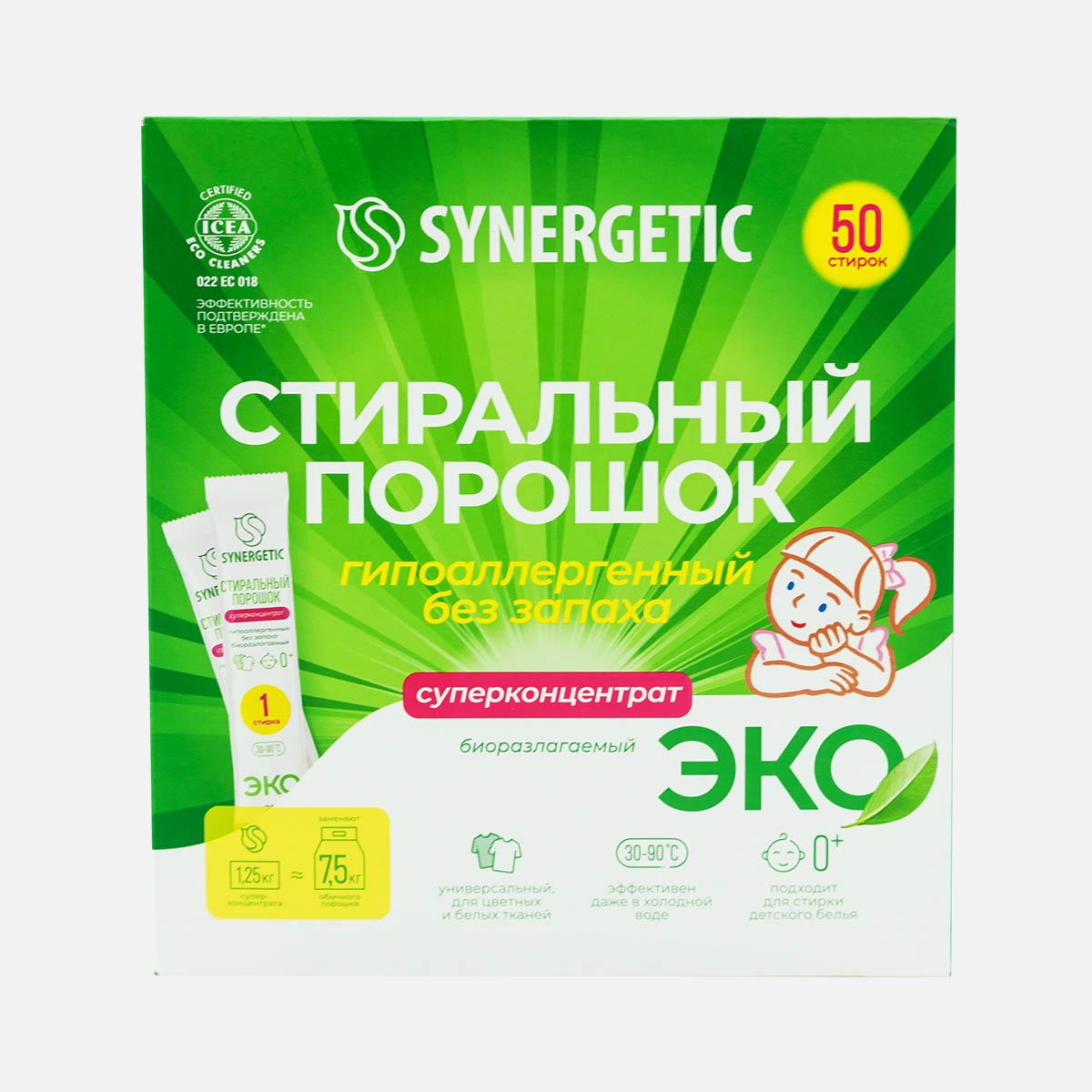 Порошок Синергетик стиральный 50стиков*25г к/к 1250г
