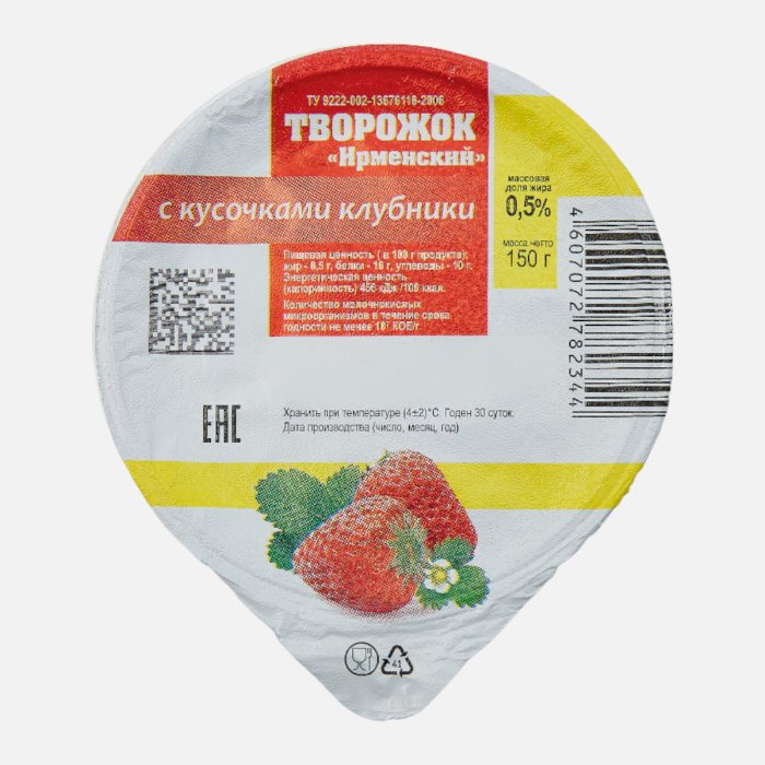 Продукт творож Ирмень Творожок с кусочками клубники 0.5% 150г