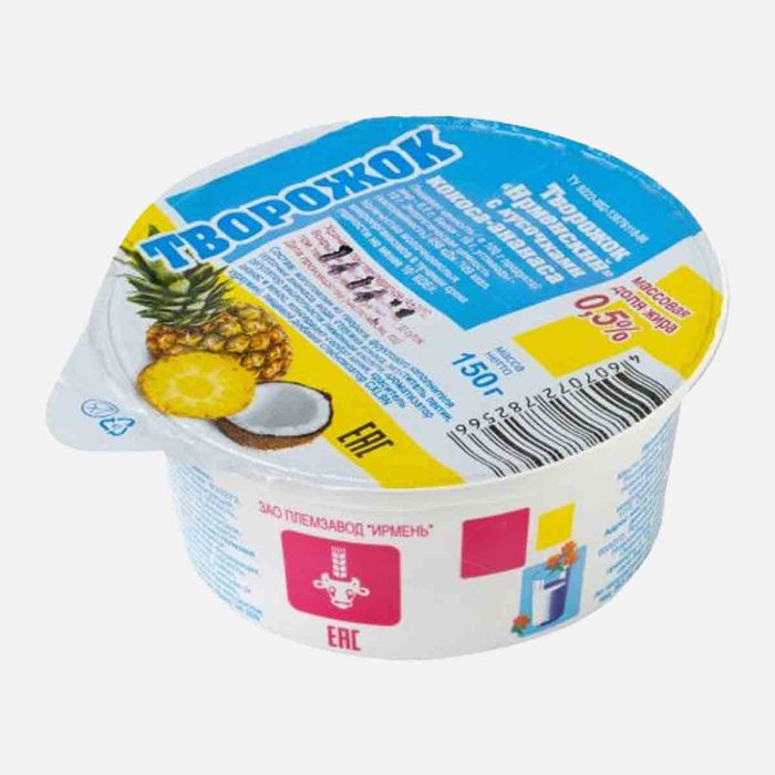 Продукт творож Ирмень Творожок с кусочками кокоса/ананас 0.5% 150г