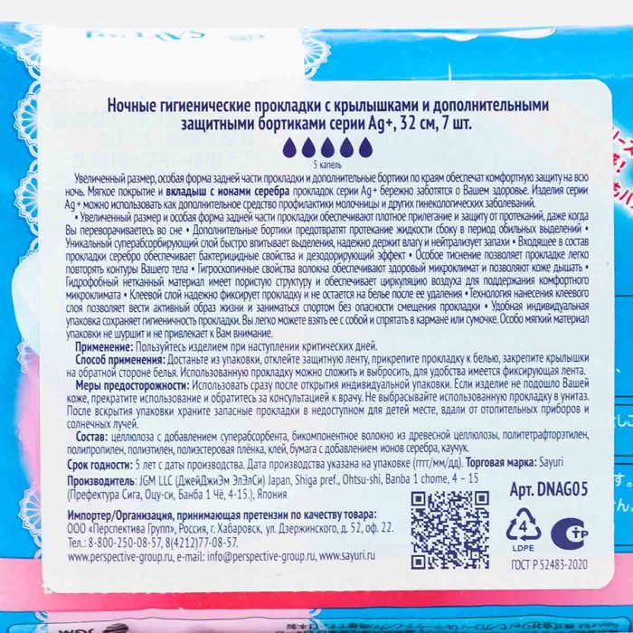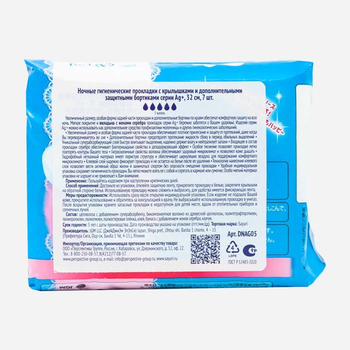Прокладки Сайюри Аргентум+ Ночные с крылышками 7шт