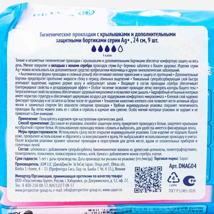 Прокладки Сайюри Аргентум+ Супер с крылышками 9шт