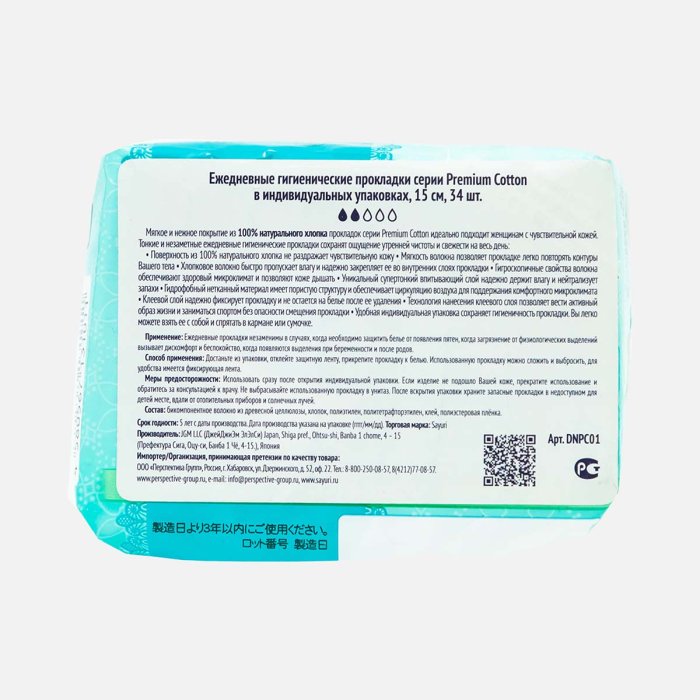 Прокладки Сайюри Премиум Котон ежедневные 34шт