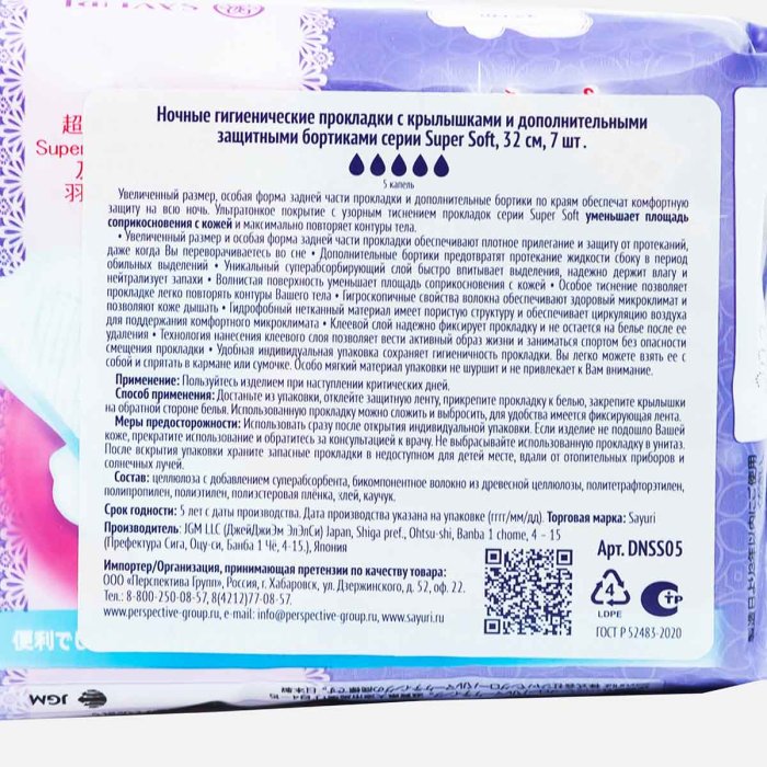 Прокладки Сайюри Супер Софт ночные 7шт