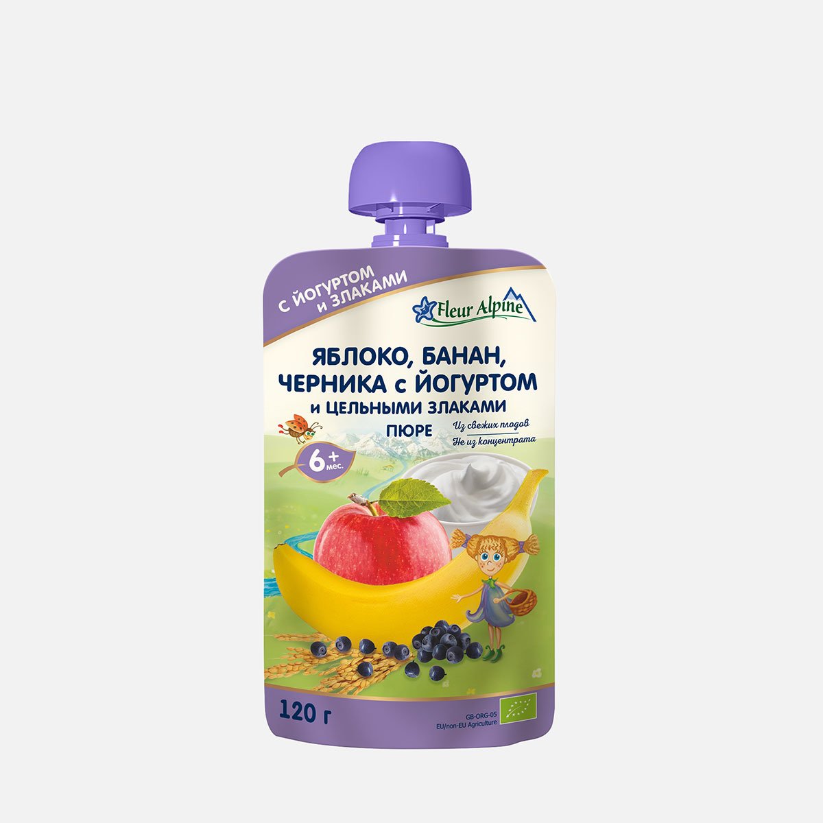Пюре Флер Альпин Яблоко/банан/черн с йогурт/злак с 6мес дой/пак 120г